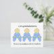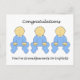 Três bebês de desenho animado em ternos azuis, sorrindo. A imagem é acompanhada do texto "Parabéns a vocês, avós, por triplicarem".