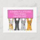 Quatro gatos cartoon possuem um grande sinal retangular cor-de-rosa que diz "Parabéns Dois Anos Livre de Cancer".