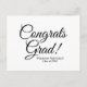 Parabéns graduado preto e branco personalizado texto clássico escola e ano da turma cartão postal de formatura. Design minimalista simples e elegante. Cor do texto preto em fundo branco totalmente personalizável. Todas as cores são editáveis. Verifique o restante da coleção para presentes adicionais de celebração de formatura, brindes, suprimentos para festas e itens de decoração.