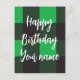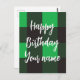 Um legal design de padrão de xadrez verde com as palavras Feliz Aniversário Seu nome. Clique em personalizar e adicione um nome.
