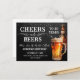 Loja de garrafas de cerveja e copo pintado em quadro-negro de giz preto rústico. Convites de aniversário ao ar livre ou em bar para ele. Qualquer idade. Modelo fácil de personalizar. Todo o texto pode ser ajustado usando a opção de design. Convites de aniversário divertidos, simples e casuais para ele.