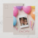 Este cartão postal de "Parabéns" fofo apresenta uma foto poloraid personalizável que é rodeada por balões cor-de-rosa, azul, roxo e laranja e velas de aniversário. Você pode personalizar o design tanto carregando sua própria foto quanto inserindo seu próprio texto desejado.