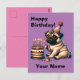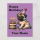 Cartão Postal Parabéns Pug Com Saudação Personalizável