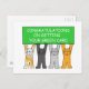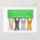 Quatro cartoons felinos segurando uma faixa colorida de verde limão que diz "Parabéns sobre como receber a sua carta verde".