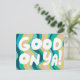 Cartão Postal PARABÉNS VOCÊ Letras Balão Listras Rosa e Verde