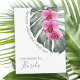 Um design divertido para o estilo de vida da ilha na praia ou em qualquer lugar, este vibrante design de anúncio em movimento tem uma folha de cor-de-água Monstera embelezada com orquídeas de fúchsia rosa-quente. Uma modelo de texto é incluída com uma citação tropical engraçada: "Paraíso ligou e eu disse sim!" Personalize o modelo de texto com o nome do estado ou país onde você se mudou. Você pode solicitar este item com a citação como escrita ou personalizá-lo com sua própria redação. O verso do design tem um modelo de texto para incluir seu novo endereço e outro texto desejado.
