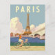 O verão em Paris é uma experiência inesquecível. Mulher andando de bicicleta vintage/retrô com Torre Eiffel ao fundo.