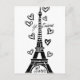 CARTÃO POSTAL PARIS JE T'AIME EIFFEL TORER E CORAÇÃO IMPRESSÃO