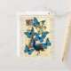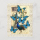 Bonito colagem digital feminina romântica, elegante, chic, de um pássaro de pavão e borboletas azuis e torre eiffel, Paris, França, num fundo postal de papel vintage e selo francês com uma pulga de ouro. copyright Oconnart