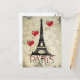 Cartão Postal Paris, Torre Eiffel e Balões Vermelhos Parchment