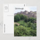Castelo de Edimburgo, Escócia. Cartão postal totalmente personalizável. O Castelo de Edimburgo é uma fortaleza que domina a linha do horizonte da cidade de Edimburgo, na Escócia, a partir da sua posição sobre a Rock do Castelo vulcânico. A habitabilidade humana do local data já do século 9 a.C., embora a natureza do assentamento precoce não seja clara. Tem havido um castelo real aqui desde pelo menos o reinado de David I no século 12, e o local continuou a ser uma residência real até a União das Coroas em 1603. A partir do século 15, o papel residencial do castelo declinou, e no século 17 seu papel principal era como uma base militar com uma grande guarnição. A sua importância como monumento histórico foi reconhecida a partir do século XIX, e desde então foram levados a cabo vários programas de restauro. Como uma das mais importantes fortalezas do Reino da Escócia, o Castelo de Edimburgo esteve envolvido em muitos conflitos históricos, desde as guerras da independência escocesa no século 14, até à Ascensão de Jacobite de 1745, e foi sitiado, com sucesso e sem sucesso, em várias ocasiões.