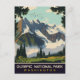 O Parque Nacional da olimpiadas fica na Península Olimpiadas de Washington, no noroeste do Pacífico. O parque espalha-se por vários ecossistemas diferentes, desde os picos dramáticos das Montanhas da Olimpiadas até florestas antigas. Cartaz viagem.