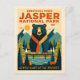 Parque Nacional Jasper Canadá “Gentil Gigante das Montanhas Rochosas” Arte de Postal Retrô – Desenho Gráfico Colorido de Souvenir de Viagem