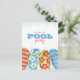 Este design apresenta uma moderna festa simples de piscina aquática, natação de verão minimalista, praia tropical Esplash, chinelos de luau havaianos de praia, roteiro de caligrafia na moda, celebração de diversão com deslizamento de água ao ar livre, excelente para crianças rústicas de aniversário de garotinha, diversão com risca, CHURRASCO de tipografia ousada, vermelho giro, azul, amarelo, adolescente adulto