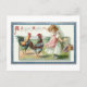 Cartão Postal Páscoa De Vintage, Galo e Rapariga