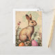 Celebre a alegria da Páscoa com este cartão postal, estilo vintage, com um belo coelho da Páscoa rodeado de ovos lindamente pintados. Com o seu charmoso e nostálgico design, este cartão-postal evoca o calor e a tradição das celebrações da primavera. Perfeito para colecionadores, cartões de natal, ou como um encantador guardião, este design capta o espírito eterno da Páscoa.