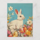 Celebre a alegria da Páscoa com este cartão postal, estilo vintage, com um belo coelho da Páscoa rodeado de ovos lindamente pintados. Com o seu charmoso e nostálgico design, este cartão-postal evoca o calor e a tradição das celebrações da primavera. Perfeito para colecionadores, cartões de natal, ou como um encantador guardião, este design capta o espírito eterno da Páscoa.
