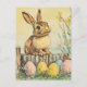 Celebre a alegria da Páscoa com este cartão postal, estilo vintage, com um belo coelho da Páscoa rodeado de ovos lindamente pintados. Com o seu charmoso e nostálgico design, este cartão-postal evoca o calor e a tradição das celebrações da primavera. Perfeito para colecionadores, cartões de natal, ou como um encantador guardião, este design capta o espírito eterno da Páscoa.