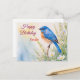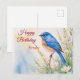 Cartão Postal Pássaro Azul Personalizado Flores Aquarela anivers
