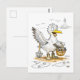 Cartão Postal Pássaro de Quadrinhos Coletando Conchas