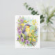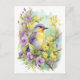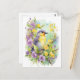 Cartão Postal Pássaro em aquarela com flores violeta e amarelo