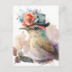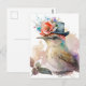 Cartão Postal Pássaro em um Chapéu Chique com Aquarela de Flores
