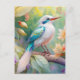 Cartão Postal Pássaro Fantasia Branca, Iridescente, Teal Wing