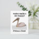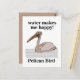 Pelican Bird Postcard, design original de Nisha Prabhu. Mande um pouco de natureza com este charmoso cartão postal pelicano. Ideal para enviar uma nota rápida, uma obrigado para você, ou apenas para dizer olá. Um design adorável para amantes de pássaros e qualquer um que aprecie a vida selvagem costeira.