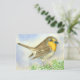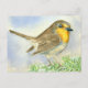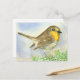 Cartão Postal Pássaro Robin em um galho de zimbro congelado