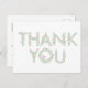 Este cartão postal moderno de agradecimento apresenta um gráfico floral da palavra Obrigado com um pássaro pousado dentro do O. Ele pode ser personalizado com uma mensagem e nomes. A paleta de cores é rosa, lavanda e verde. O texto do verso pode ser personalizado ou removido para notas manuscritas. Coordena com a Coleção de Casamento Love Birds & Letters.