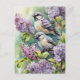 Cartão Postal Pássaros em Aquarela com Flores de Lilás em Flor