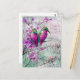 Alegria na beleza da natureza com este cartão postal de beija-flor vibrante. Apresentando dois beija-flores coloridos empoleirados em um galho de flores cor-de-rosa brilhantes, a mistura viva de florais e detalhes pintados captura a magia do primavera no florescimento do cheio. Perfeito para amantes de pássaros, jardineiros, e qualquer um que desfrute de um toque de cor, este cartão postal faz uma maneira alegre de enviar uma nota, adicionar à sua coleção de artigos de papelaria, ou dar como um pequeno presente pensativo. Com seu design fresco e elevador, é uma celebração encantadora de beija-flores e a alegria da primavera.