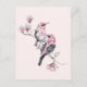 Cartão Postal Pássaros rosa e pretos em uma ramificação de árvor