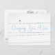 Envie uma mensagem com um dos nossos cartões postais personalizados. Adornada com um fundo verde macio de madeira com letras manuscritas a frase Deixando você uma linha na frente. Personalize a parte traseira com seu endereço. Veja nossa seleção de cheios de cartões de saudação em nossa loja Zazzle!