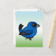 O passarinho-de-índigo é uma pequena ave migratória que come sementes. Eles são nomeados pela coloração azul brilhante do macho durante a época de reprodução. Os machos são marrons na época de baixa temporada, enquanto as fêmeas são marrons durante todo o ano. Este é o nosso totalmente fofo Passarinho-de-índigo (macho) Birdorable! Você pode personalizar totalmente este presente! Mova o pássaro, mude a cor ou o estilo, adicione imagens ou texto -- faça o seu próprio!