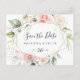 Esta folhagem de ouro geométrica horizontal, exceto o cartão postal é perfeito para um casamento rústico. O design apresenta uma folhagem botânica, pintada à mão, verde e dourada, com flores cor-de-rosa, pinceladas, brancas, enfeitando uma elegante estrutura geométrica.