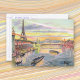 A Exposição de 1900 trouxe o mundo a Paris para ver e experimentar este evento maravilhoso. Muitas ilustrações foram feitas para comemorar este tempo excitante. Essa imagem, de um cartão postal do período, mostra a cidade em cores pastel suaves e nebulosas. O Pont Alexandre III está no primeiro plano com barcos e barcaças a planar ao longo do rio guiados pelas luzes da exposição. As cores calmas e relaxantes são perfeitas para decoração domiciliar, correspondência pessoal e ideias de presentes.