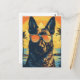 Cartão Postal Pastor alemão com óculos de sol numa praia