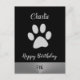 Cartão Postal Pata de Cachorro em Prata sobre fundo preto
