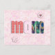 Cartão Postal Patchwork "MOM" com fundo de rosas rosa