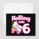 Cartão Postal Patinação de Aniversário de 6 Anos Patins 6 Anos d