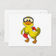 Cartão Postal Pato nadando com boia e óculos de natação