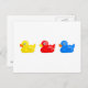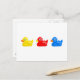 Figura de desenho animado bonito de três patos coloridos diferentes flutuando juntos em fileira. Imagem disponível em vários presentes e produtos.