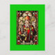 Imagem de vidro manchada de Saint Patrick com fundo verde no cartão postal.
