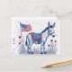 A charming, hand-illustrated donkey adorned with a red, white, and blue star-patterned saddle blanket, standing proudly beside a waving American flag. Surrounded by simple wildflowers and soft linework, the design blends gentle whimsy with classic Americana symbolism, creating a friendly, patriotic illustration with a vintage storybook feel.