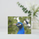 Belo Retrato Pavão Azul Feche no Fundo Verde