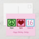 Cartão Postal Paz Amor Doce 16 Aniversário de 16 anos Rosa