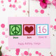 O cartão de aniversário de dezesseis anos personalizado perfeito para uma adolescente. Paz Amor Doce 16 com seu texto personalizado fofo em rosa.