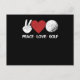 Cartão Postal Paz Amor Golfe Soa Golfe Engraçado Fã Golf