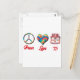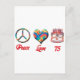 Peace Love e 75 anos de idade com símbolo de paz, coração e bolo de aniversário tintos